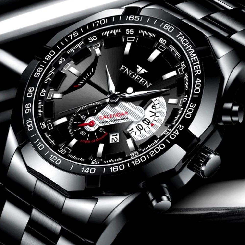 - Jam tangan pria fashion luxury yang terbuat dari full steel dengan desain elegan hitam mewah.